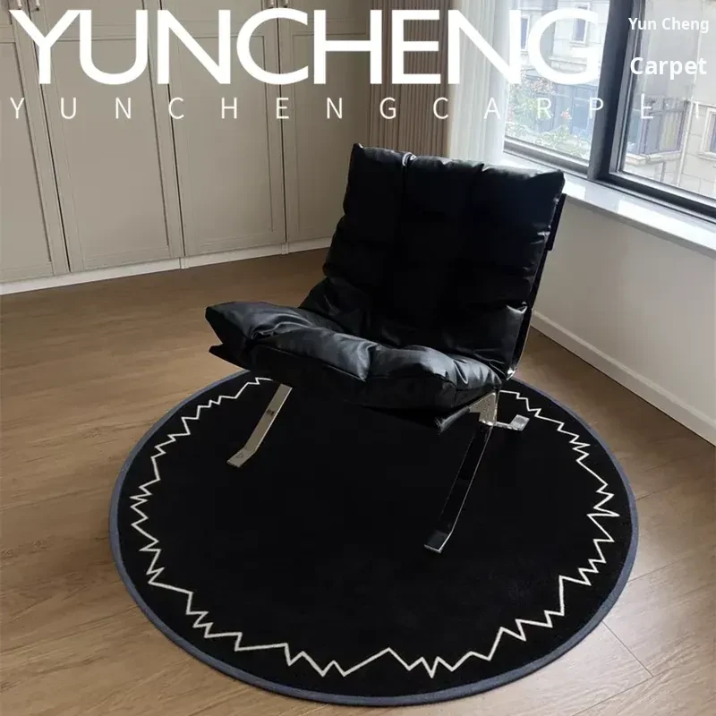 2025 Luxury Black Round Coffee Table Carpet - Chic Italian Design for Living Room, Bedroom, Study, Walk-in Closet, and Bedside Use. Perfect for Elevating Your Home Décor!