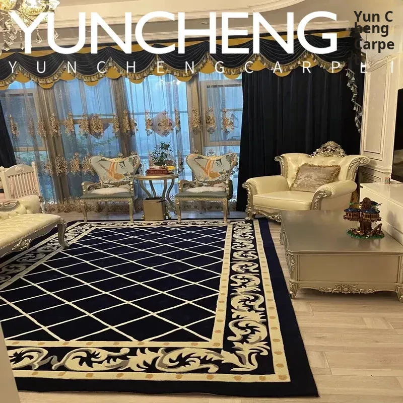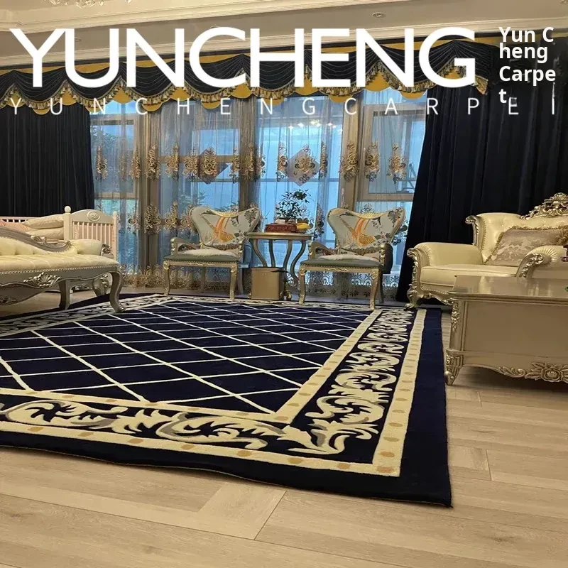 Blue European-American-French-Chinese Style Handcrafted Area Rugs for Living Room, Bedroom, Study, and Walk-in Closet – Perfect for Cozy Spaces and Elegant Decor