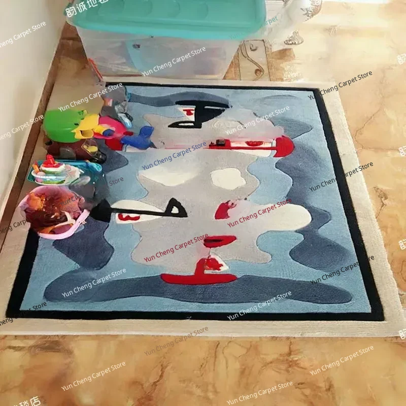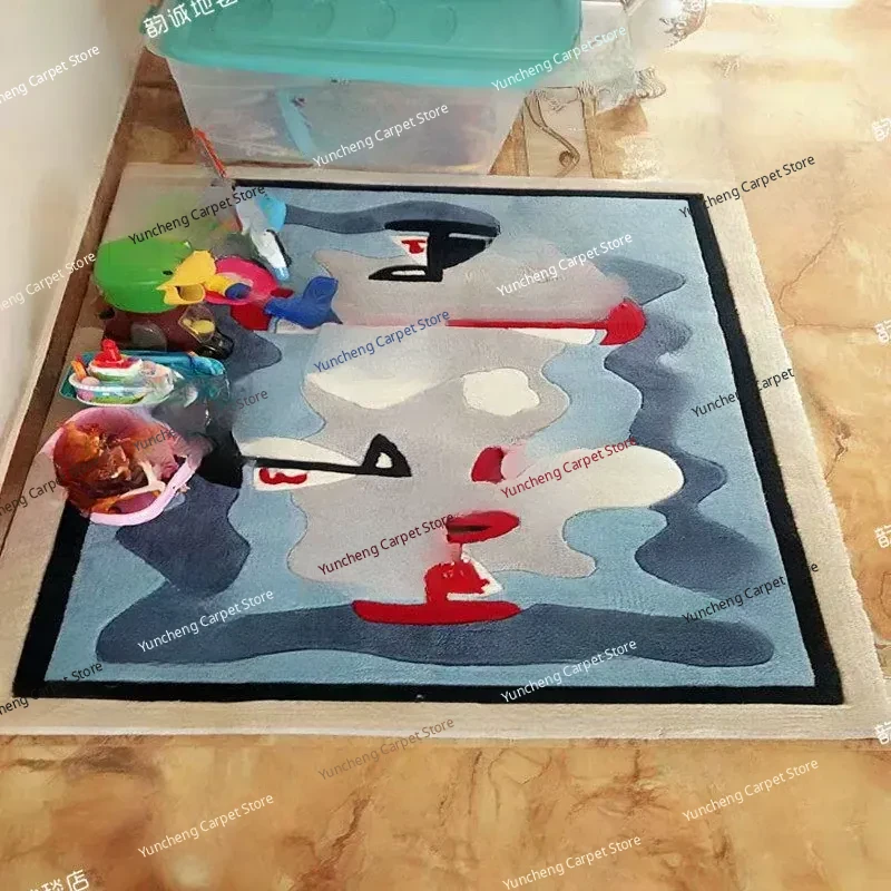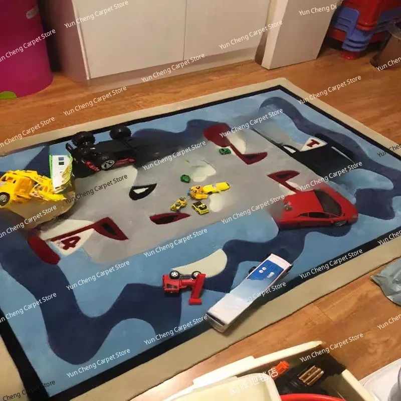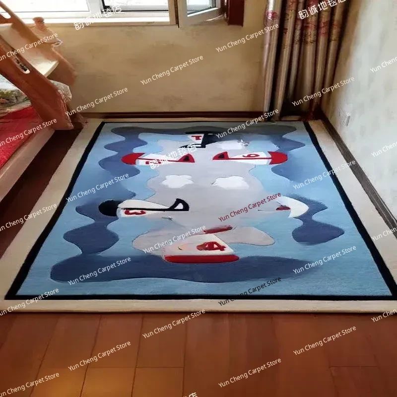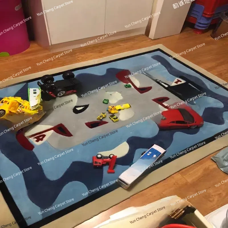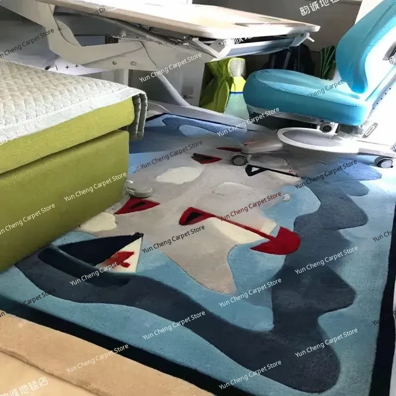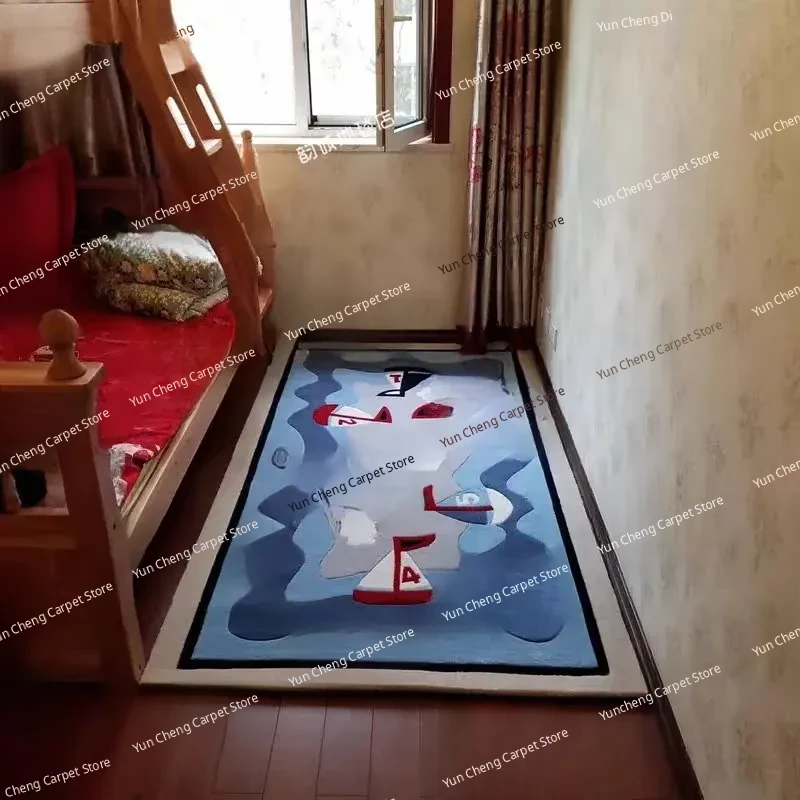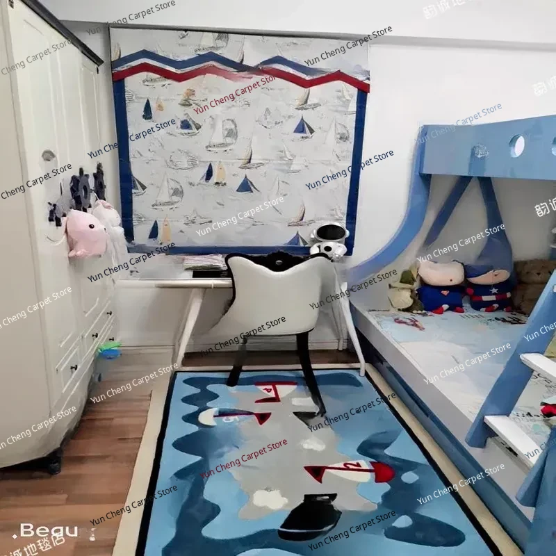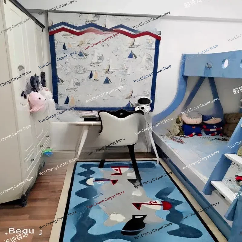 Blue Sailboat Kids' Room Mediterranean Bedroom Area Rug - European & American Cartoon Design for Living Room Coffee Table & Bay Window Decor