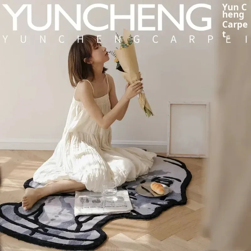 Chic Luxury Abstract Gray Area Rug for Living Room - Stylish European-American Design for Bedroom, Study, Closet & Bedside Use