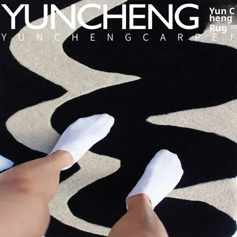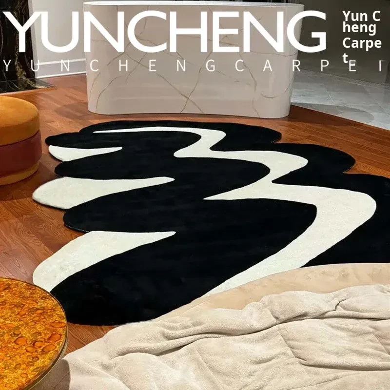 Elegant Black and White Wave Pattern Area Rug for Living Room, Bedroom, Study, and Walk-In Closet – Perfect for a Touch of Luxury in Your Home Décor!