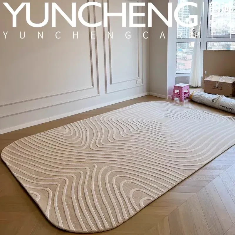 Elegant European-American Cream Textured Striped Area Rug - Perfect for Living Room, Bedroom, Study, Dressing Room, and Bedside Use