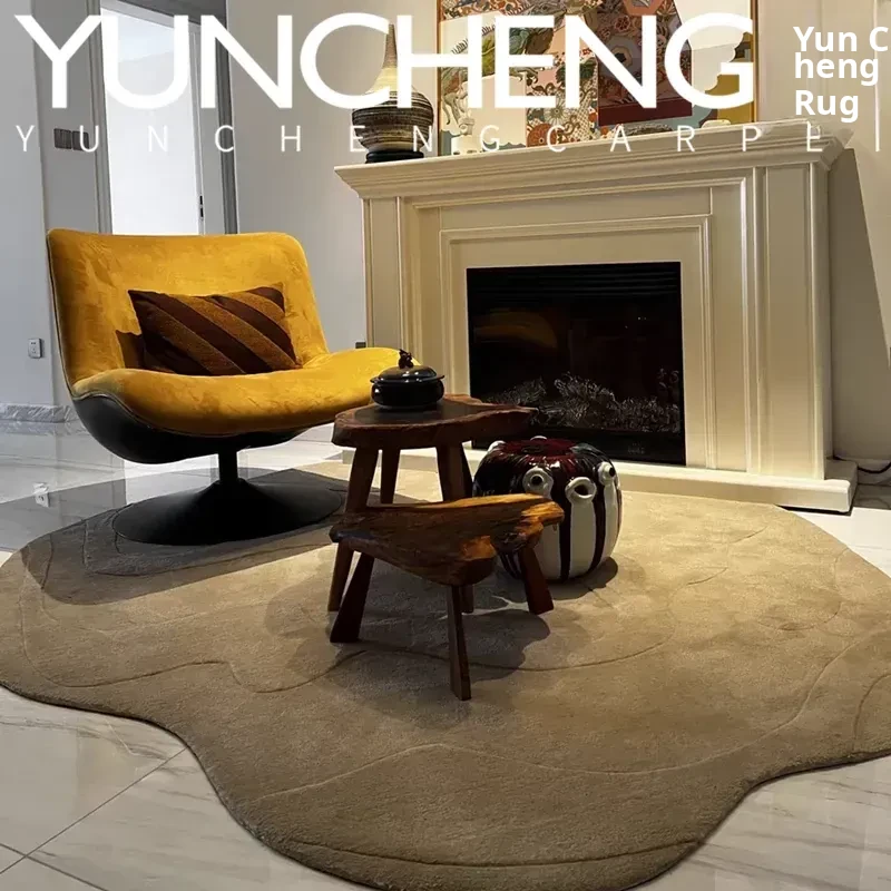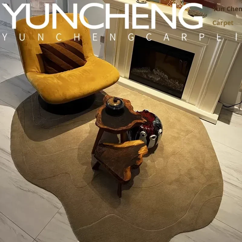 Elegant Western-style Irregular Brown 3D Living Room Coffee Table Area Rug - Textured Bedroom, Study, Cloakroom, and Bedside Carpet for a Luxurious Touch