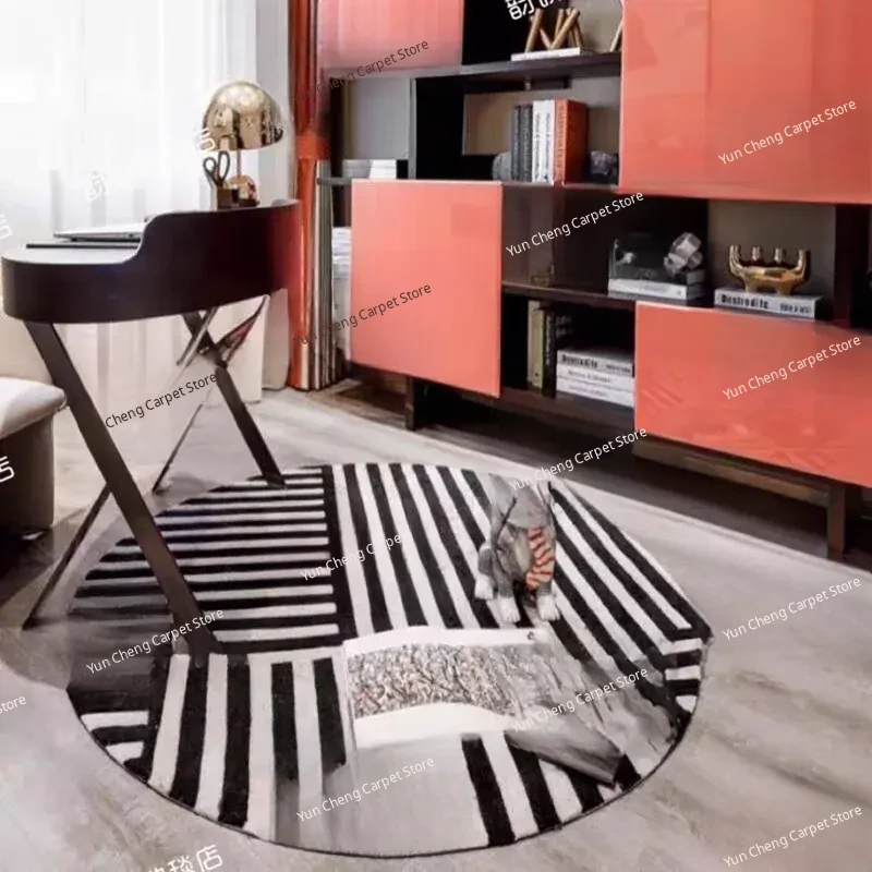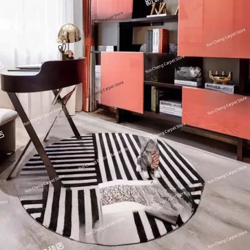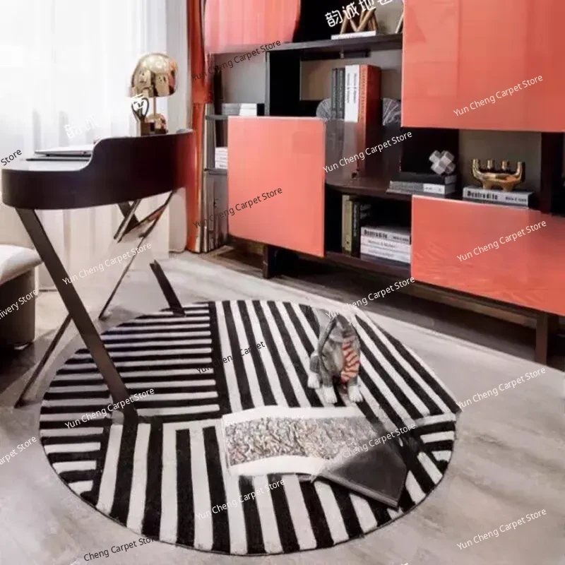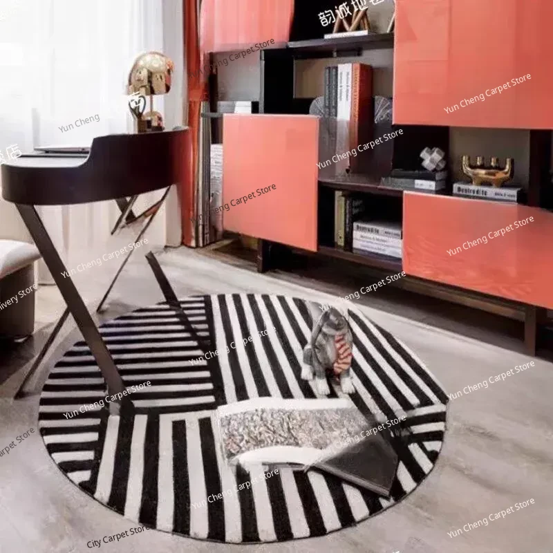 Handmade Black and White Striped Round Carpet for Living Room, Bedroom, Study, and Hallway - Perfect for Enhancing Your Home Decor!