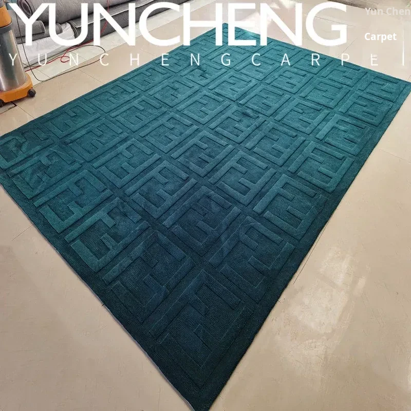 Luxurious Peacock Green 3D Area Rug - Elegant Modern Carpet for Living Room, Bedroom, Study, Walk-in Closet, and Bedside Decor