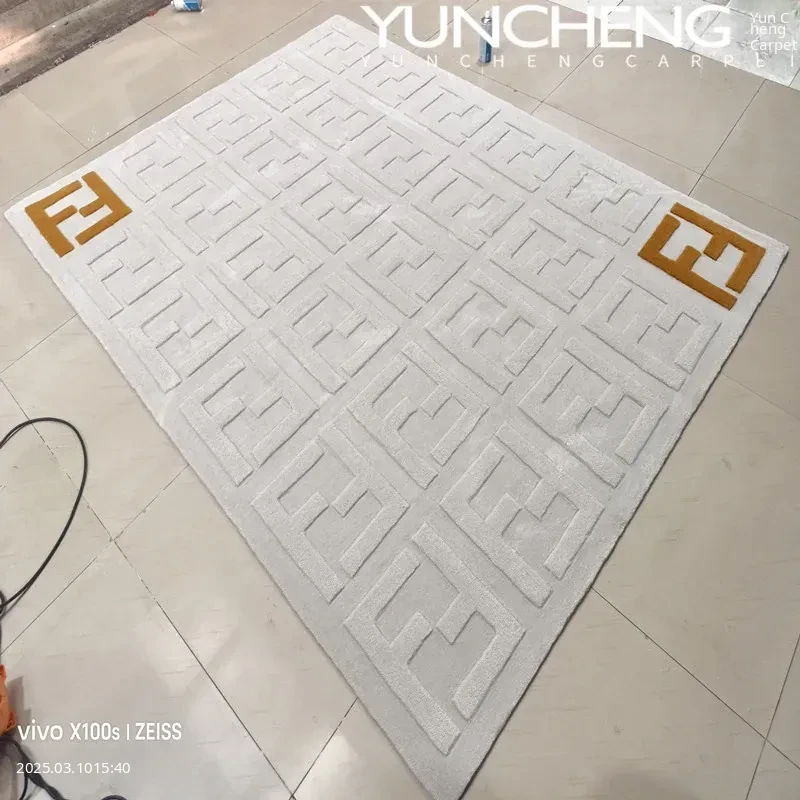 Luxury Beige Fendi Double FF 3D Area Rug – Perfect for Your Living Room, Bedroom, Study, Walk-in Closet, or Bedside! Elevate Your Space with Chic Style and Comfort.