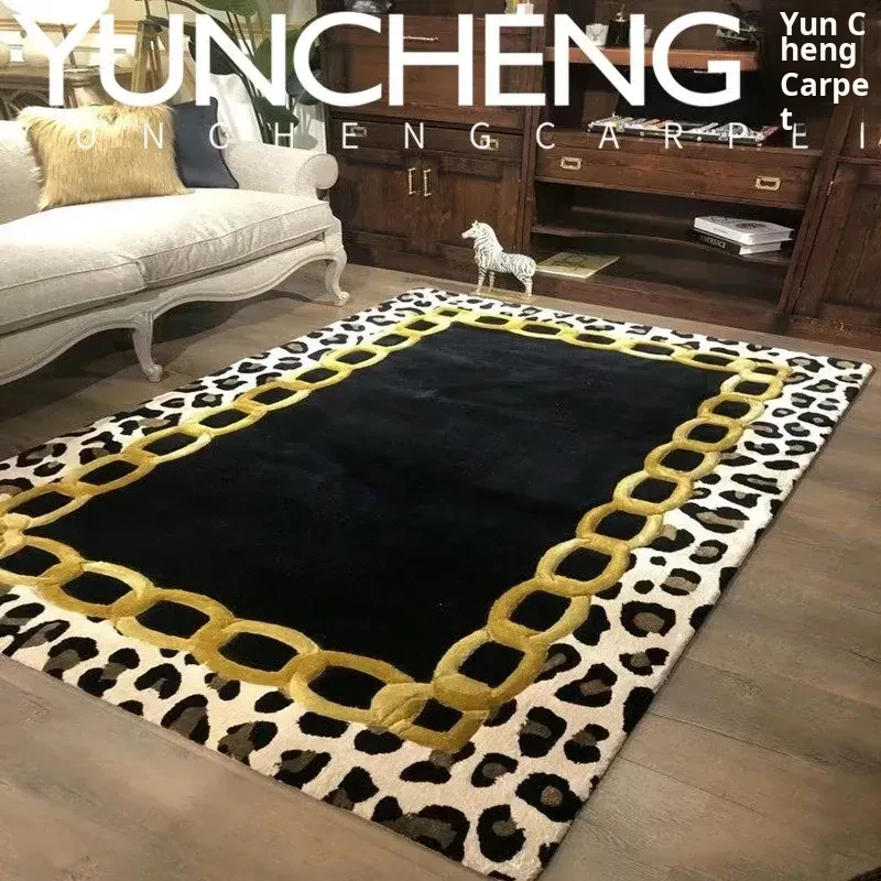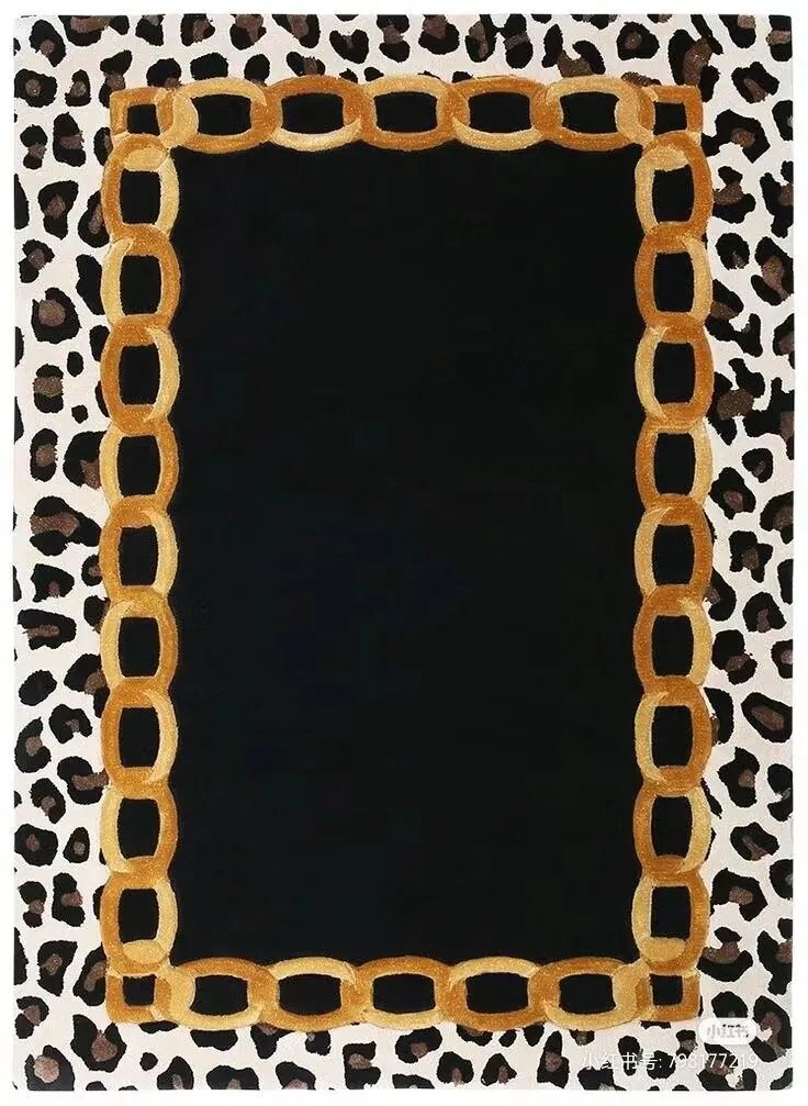 Luxury Black Leopard Print Coffee Table and Area Rug Set for Stylish Living Room, Elegant Bedroom, Home Office, and Chic Walk-in Closet - Perfect for Adding a Touch of Sophistication to Your Space!