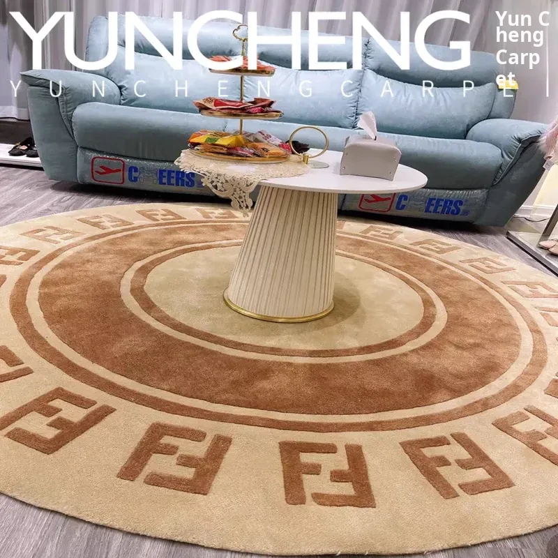 Luxury European and American Designer 3D Villa Round Living Room Coffee Table Rug - Trendy Bedroom, Study, and Closet Area Bedside Mat