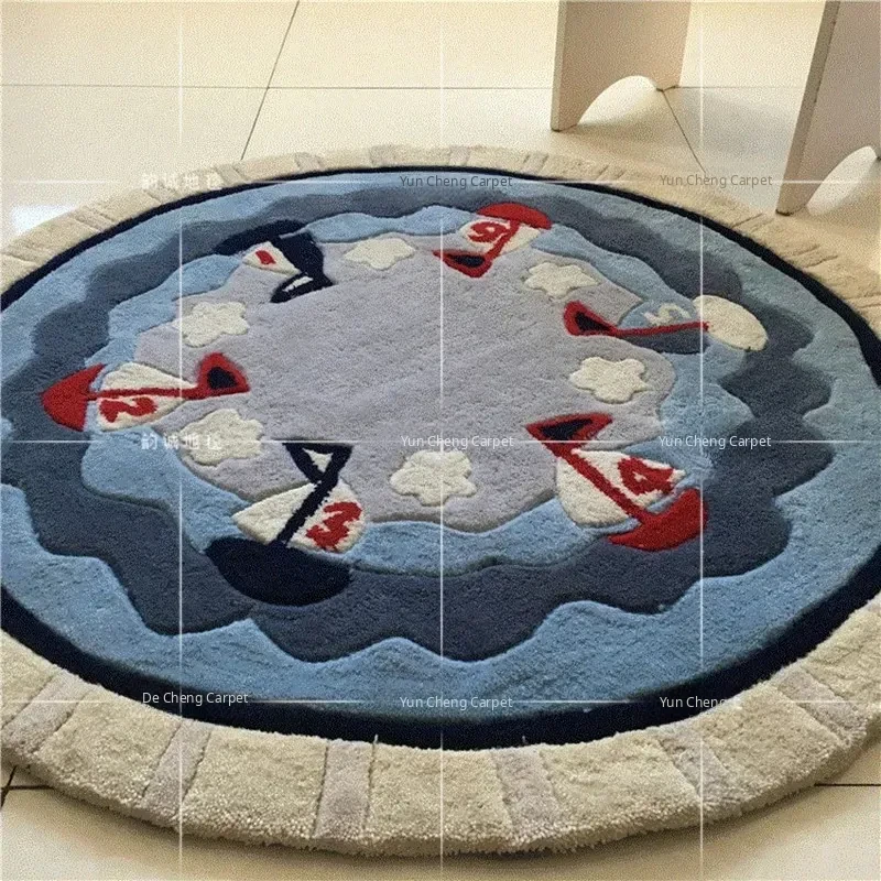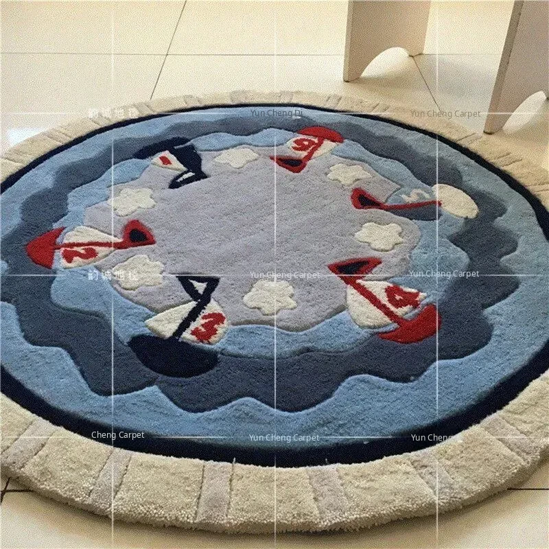 Mediterranean Style Sailboat Round Rug - Unique Pattern for Living Room, Bedroom, Hanging Basket, Computer Chair, and Kids' Room - Elevate Your Space with Coastal Charm!
