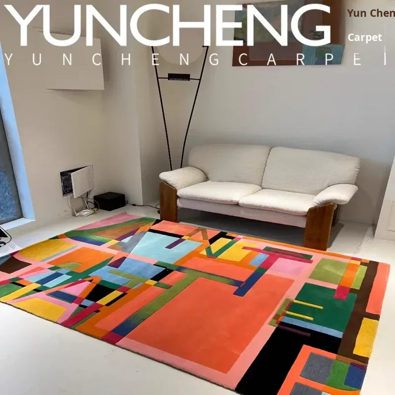 Modern Chic Colorful Luxury Coffee Table Rug for Living Room, Vibrant Bedroom, Study, and Closet Area - Stylish Bedside Carpet