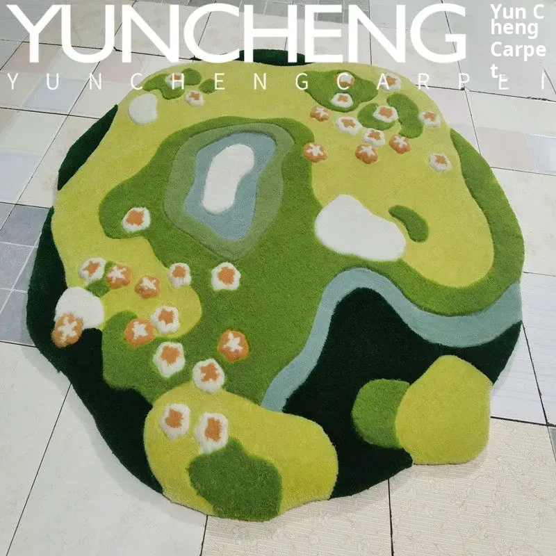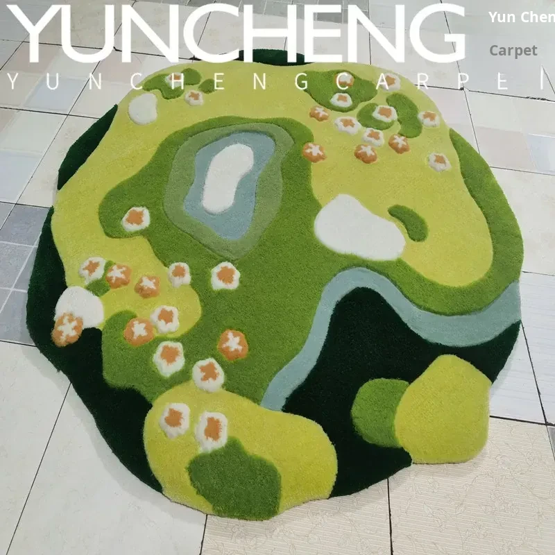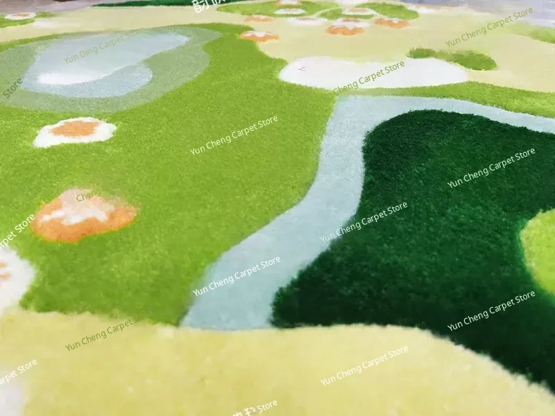 Modern Luxurious 3D Green Moss Area Rug - Elegant Coffee Table Carpet for Living Room, Artful Bedroom, Study, Walk-in Closet, and Bedside Décor