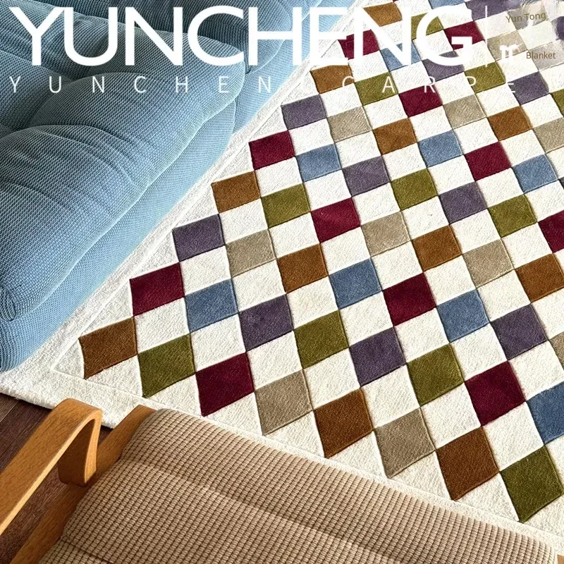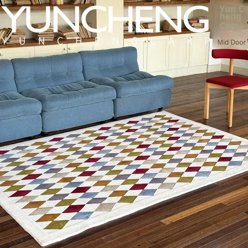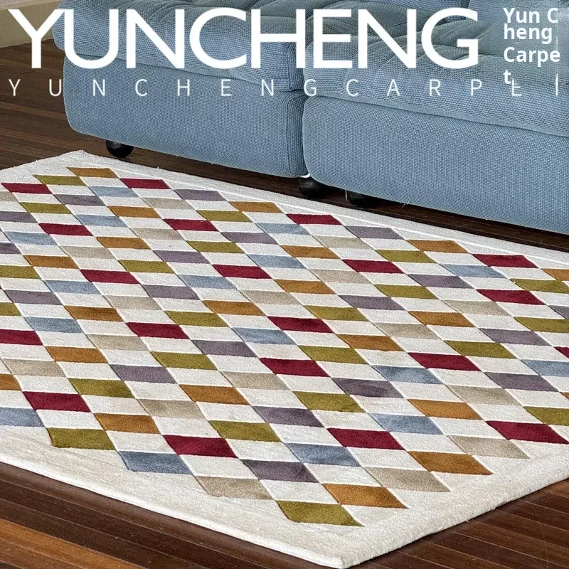 Modern Luxurious Geometric Diamond-Patterned Dopamine Area Rug for Living Room, Bedroom, Study, and Walk-in Closet - Elevate Your Space with Style and Comfort!