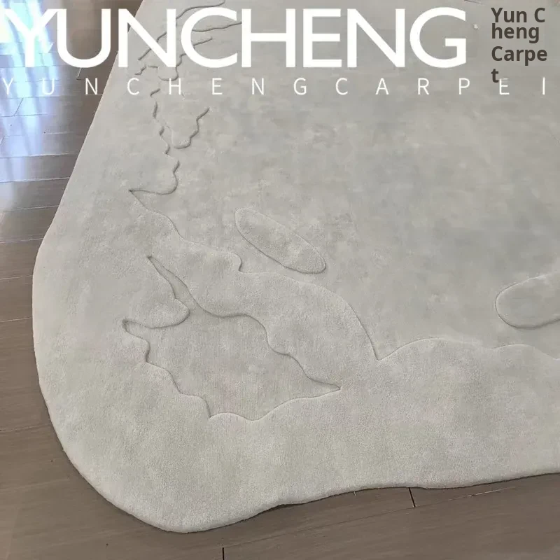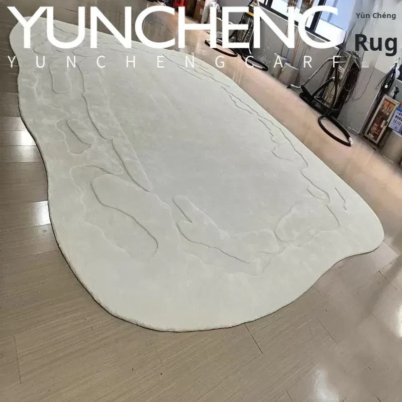 Modern Luxury Beige Abstract Area Rug - Stylish 3D Living Room Coffee Table Carpet for Italian Bedroom, Study, Walk-in Closet, and Bedside Use