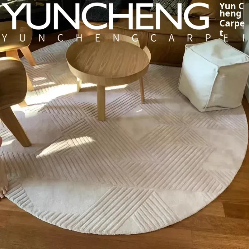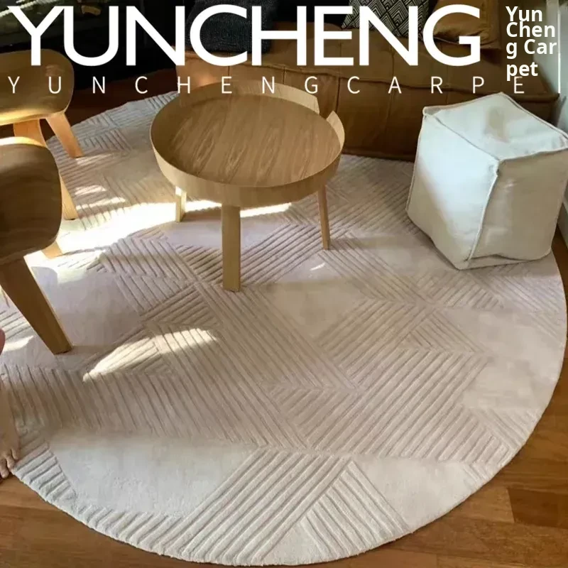 Modern Luxury Beige Round Striped Area Rug for Living Room, Bedroom, Study, and Walk-in Closet – Elevate Your Space with Sophisticated Style!