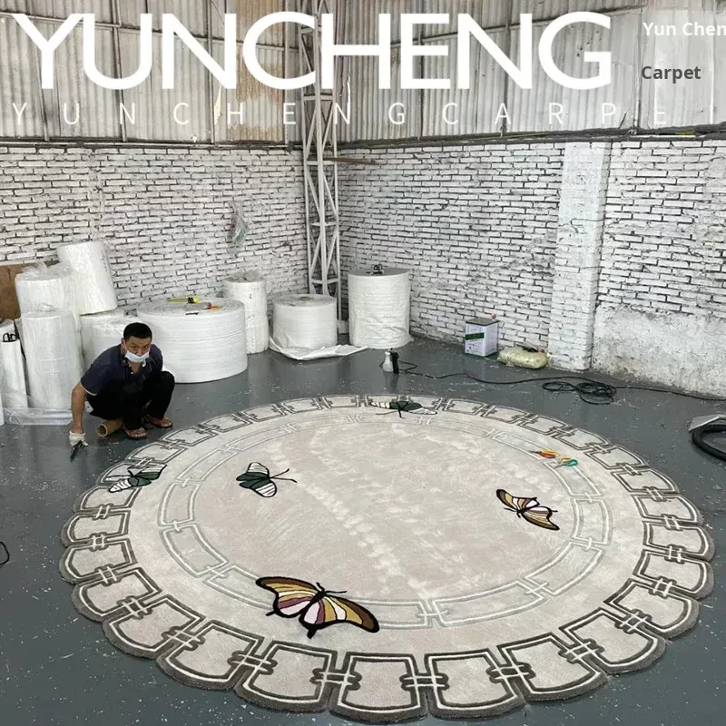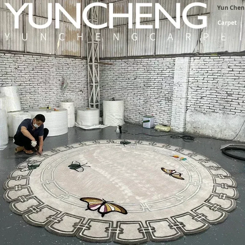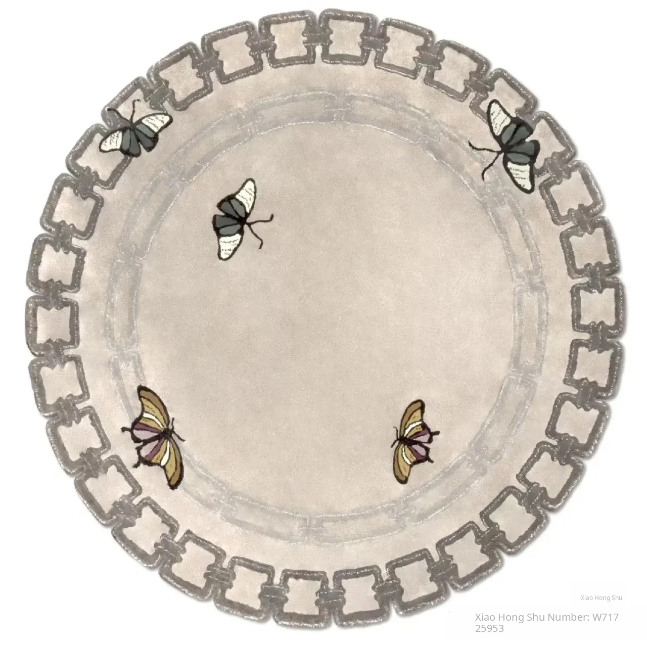 Modern Luxury European Butterfly Round Coffee Table Rug - Chic French and Italian Style Bedroom, Study, Dressing Room, and Bedside Carpet