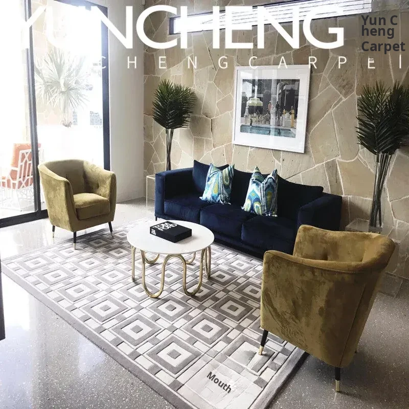 Modern Luxury European Style Geometric Checkered Area Rug for Living Room, Bedroom, Study, and Walk-in Closet – Soft Acrylic Bedside Mat for a Touch of Elegance and Comfort