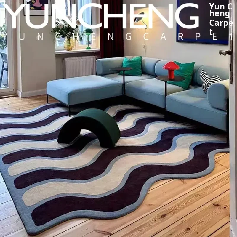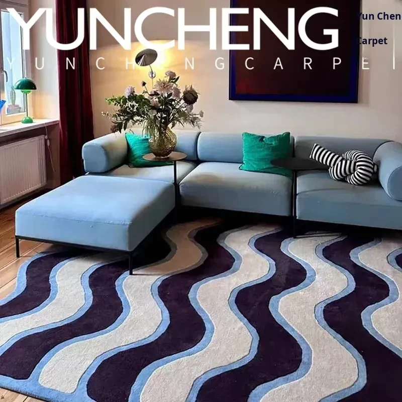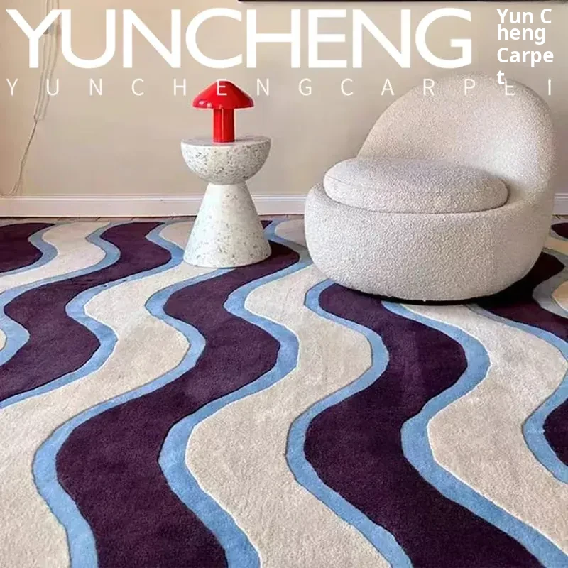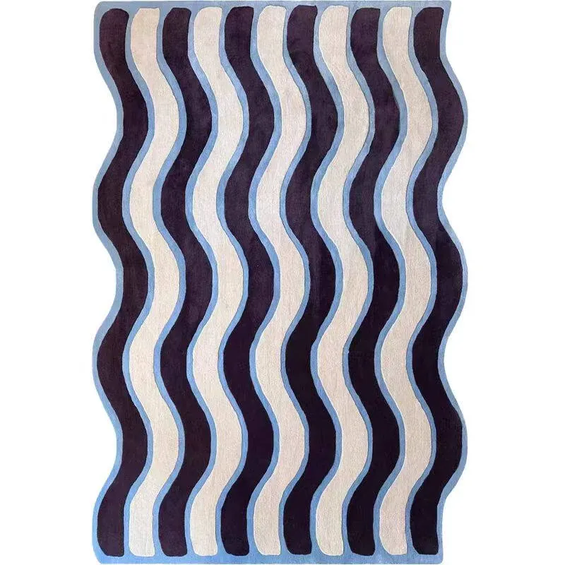 Modern Luxury Mediterranean Blue Acrylic Wave Pattern Area Rug - Perfect for Living Room, Bedroom, and Walk-in Closet! Enhance Your Space with Nordic Elegance.