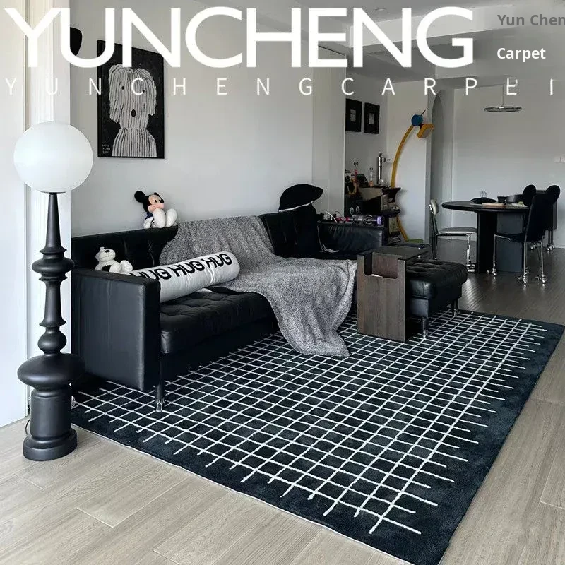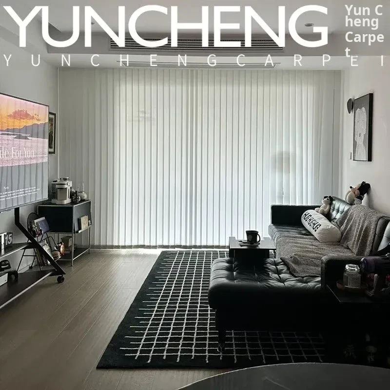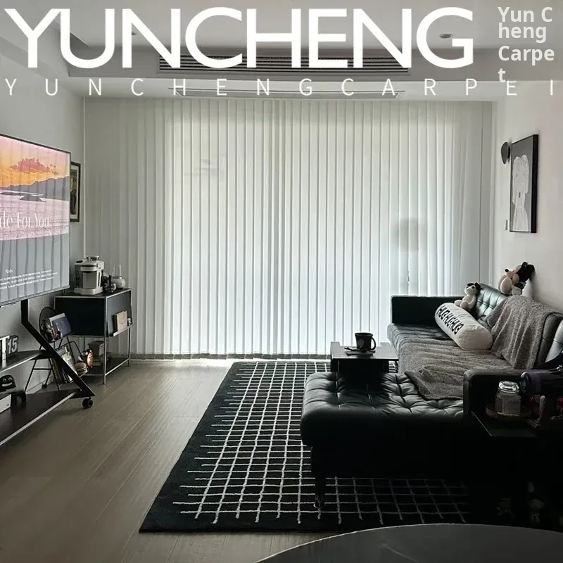 Modern Minimalist Elegant White Lined Coffee Table with European Style Area Rug for Living Room, Italian-Inspired Study, Walk-In Closet, and Bedside Carpet - Perfect for Luxurious Home Décor