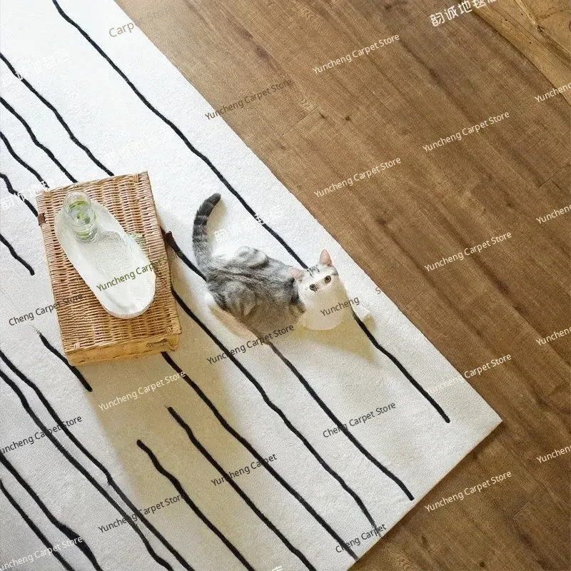 Modern Minimalist White Area Rug - Versatile Stripe Carpet for Living Room, Coffee Table, Study, Showroom, Walk-in Closet, and Bedroom. Perfect for Enhancing Your Home Decor!