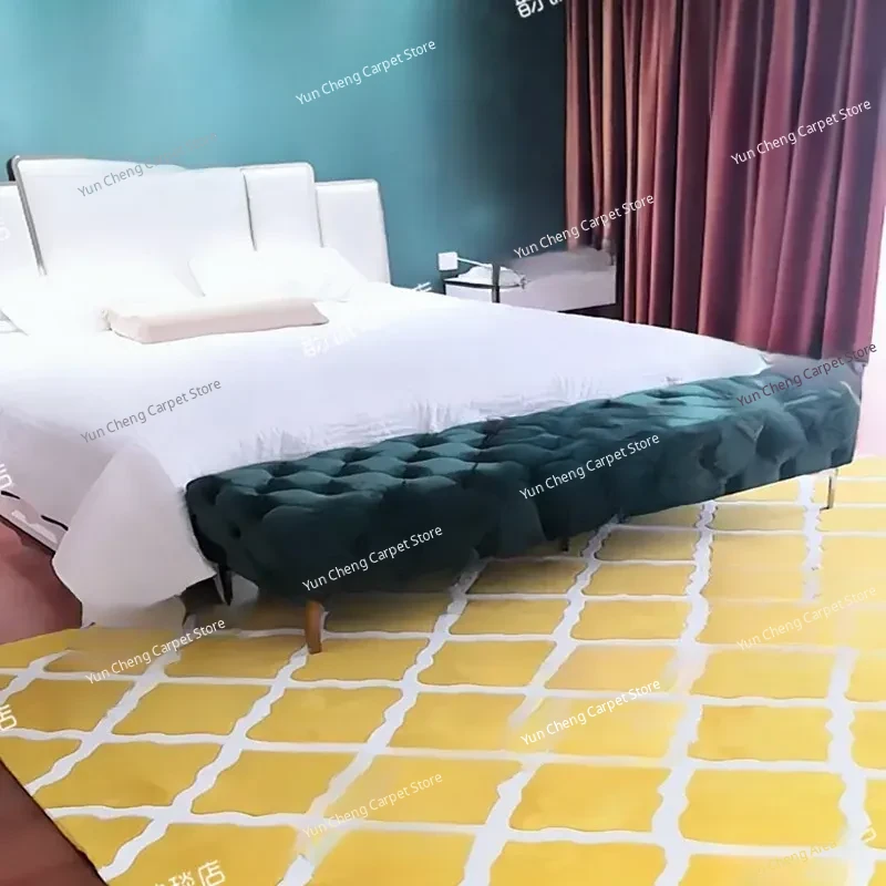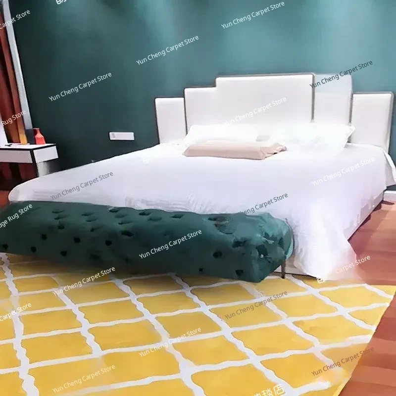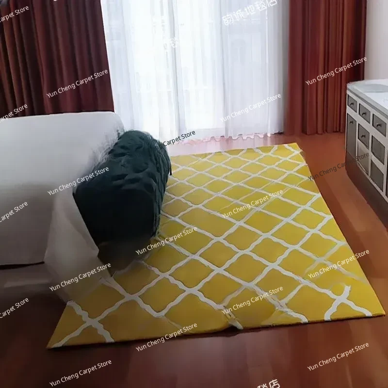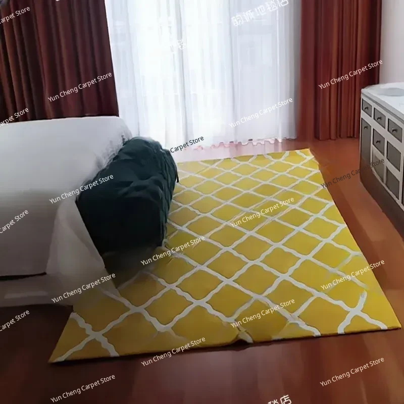 Modern Minimalist Yellow Checkered Area Rug for Living Room and Bedroom - Perfect for Photography, Soft and Durable Acrylic Fiber Carpet