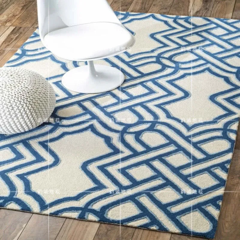 Modern Scandinavian Style Blue Striped Area Rug - Handcrafted Acrylic Carpet for Living Room, Bedroom, and Study - Elevate Your Home Décor with Chic Elegance