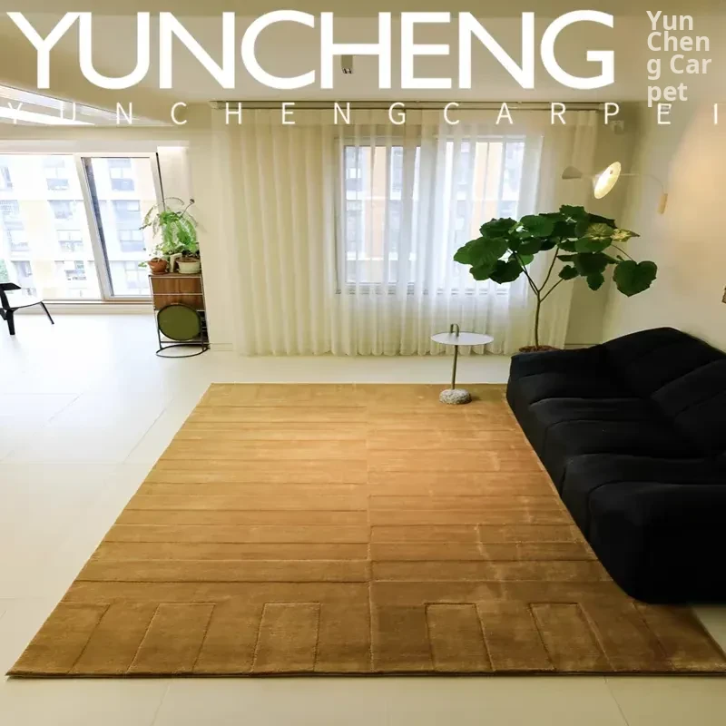 Modern Wide Stripe 3D Luxury Area Rug - Chic Camel Carpet for Living Room, Bedroom, Study, Walk-in Closet, and Bedside Use - Elevate Your Space with Style and Comfort!