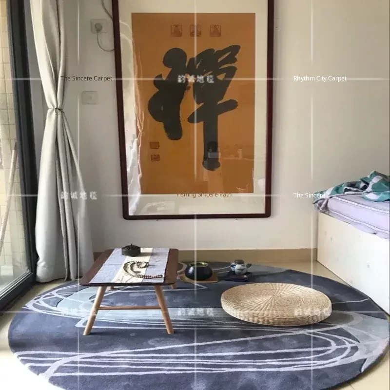 Nordic Round Area Rug with Abstract Stripes - Ideal for Living Room or Coffee Table; American Style Full-Coverage Synthetic Fiber Rug for Bed End - Elevate Your Space with Modern Elegance!