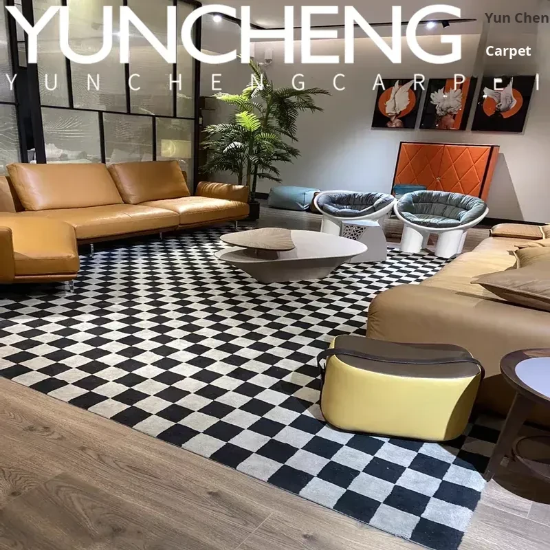 Stylish Black and White European-American Living Room Coffee Table Rug - Italian and French Design for Bedroom, Study, Closet, and Bedside Full Coverage Carpet