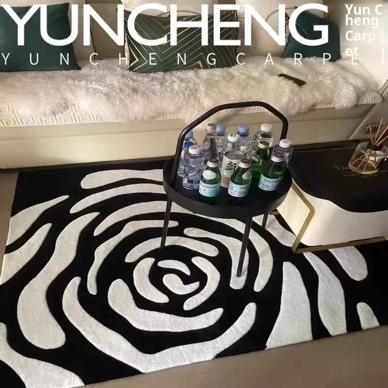 Stylish European-American Luxury Black and White Rose Pattern Area Rug for Living Room, Coffee Table, Italian Bedroom, Study, Cloakroom, and Bedside Decor - Elevate Your Space with Elegance!
