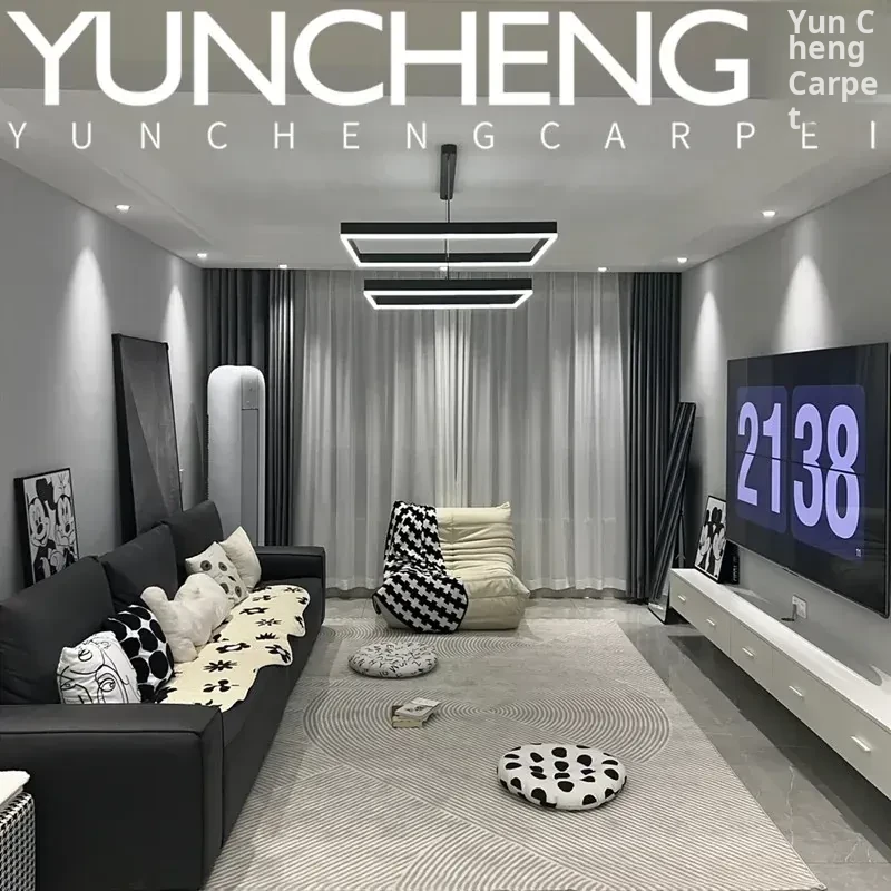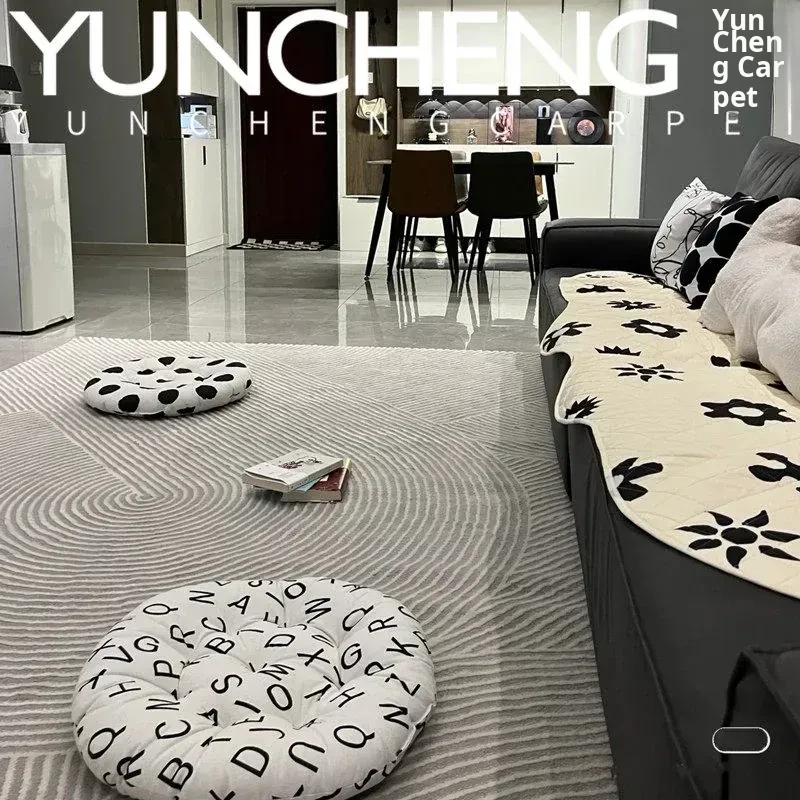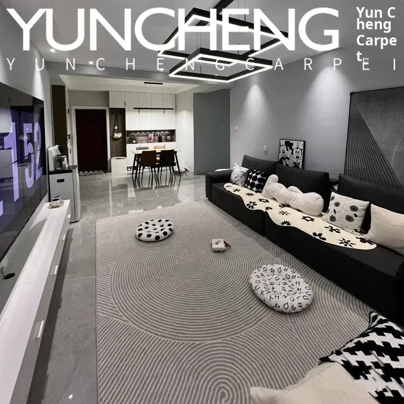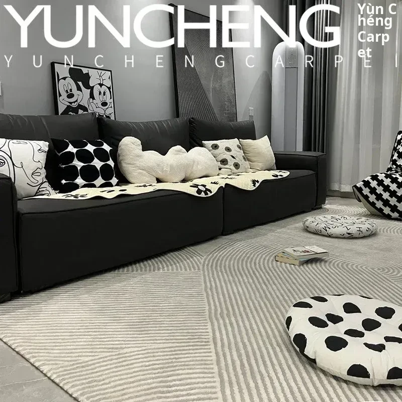 Stylish Light Luxury Gray and White Striped Area Rug for European-American Living Room, Italian Bedroom, Study, and Walk-in Closet - Perfect for Bedside or Full Coverage