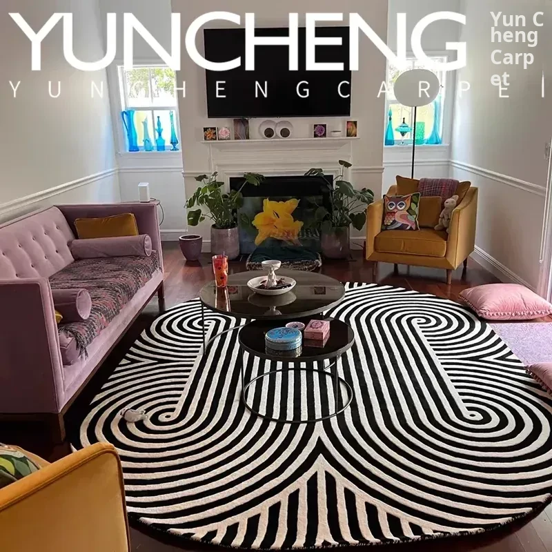 Stylish Luxury Oval Black and White Geometric Area Rug for Living Room, Bedroom, Study, and Closet – Perfect for Bedside and Full Coverage