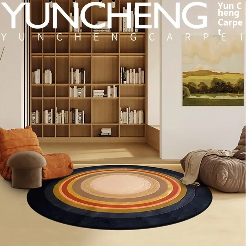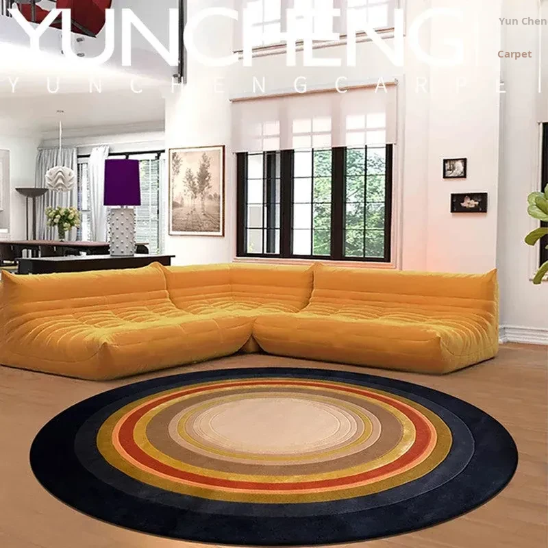 Trendy European-American Light Luxury Colorful Round Coffee Table Area Rug for Living Room, Italian Style Bedroom, Study, Closet, and Bedside Carpet