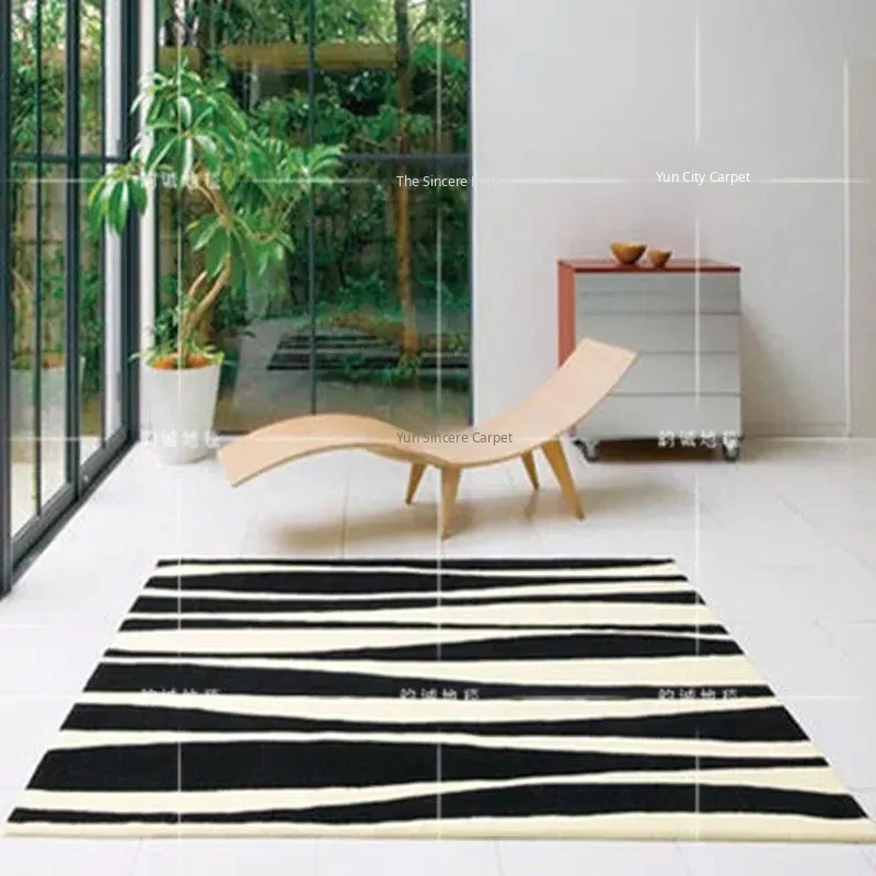 Yuyu Multi-Black and White Striped Area Rug for Living Room - Nordic Style, Soft and Durable Acrylic Carpet Perfect for Tea Table and Full Coverage