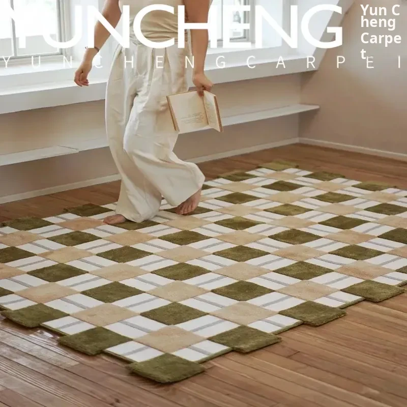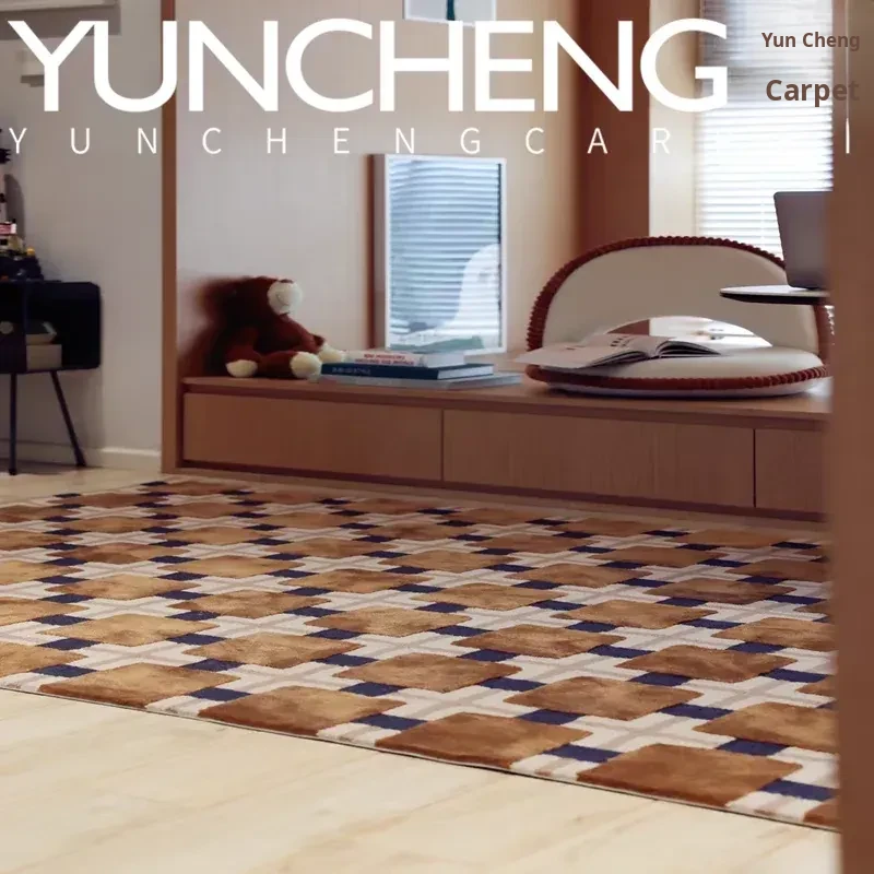 Modern Minimalist Light Luxury Vintage Beige Checkered Coffee Table Sofa Area Rug for Living Room, Bedroom, Study, Walk-in Closet, and Bedside - Elevate Your Space with Style and Comfort!