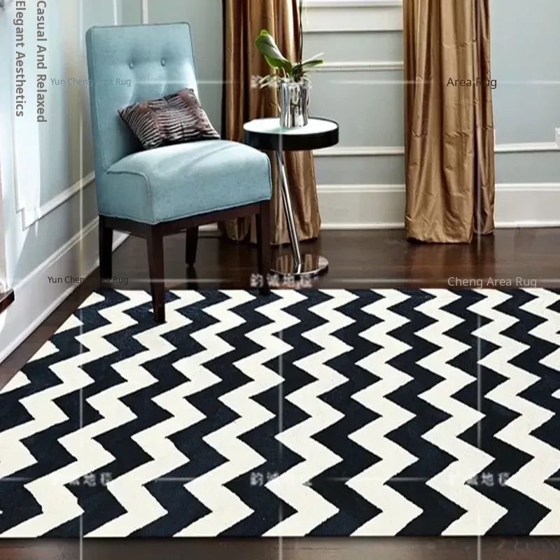 Modern Minimalist Luxury Black and White Wave Pattern Area Rug for Living Room, Bedroom, Study, and Closet - Perfect for Enhancing Your Home Décor
