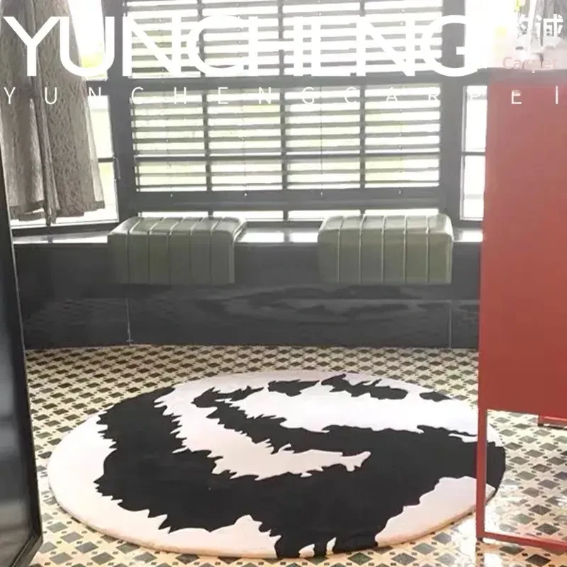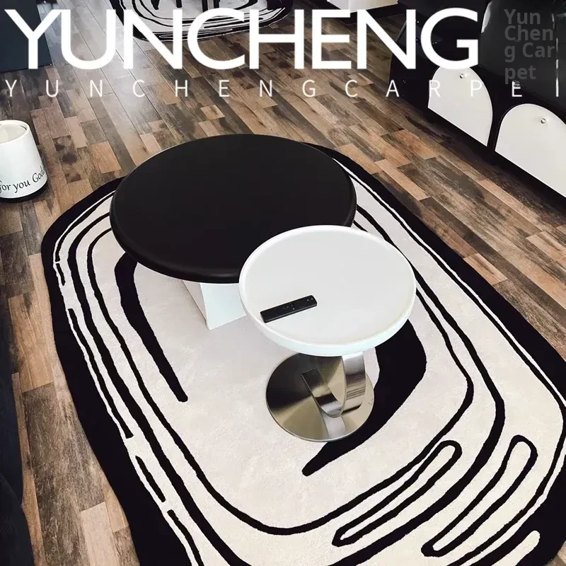 Modern European Minimalist Round Black and White Coffee Table Carpet - Perfect for Living Rooms, Bedrooms, Studies, and Closets. Elevate Your Space with Stylish Comfort!
