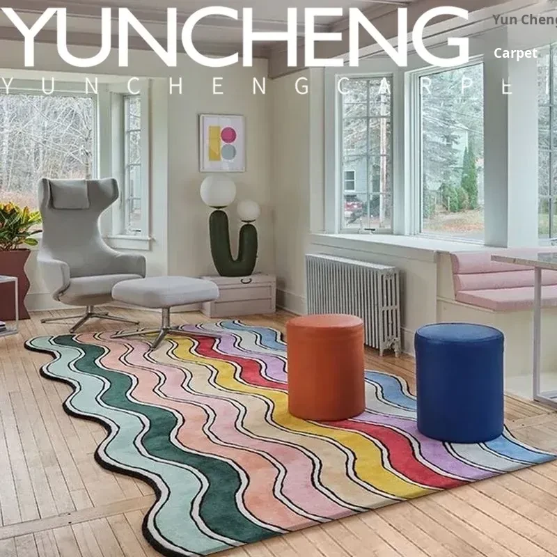 Modern Italian Luxury Designer Irregular Coffee Table Carpet - Versatile Area Rug for Living Room, Bedroom, Study, Walk-in Closet, and Bedside Décor