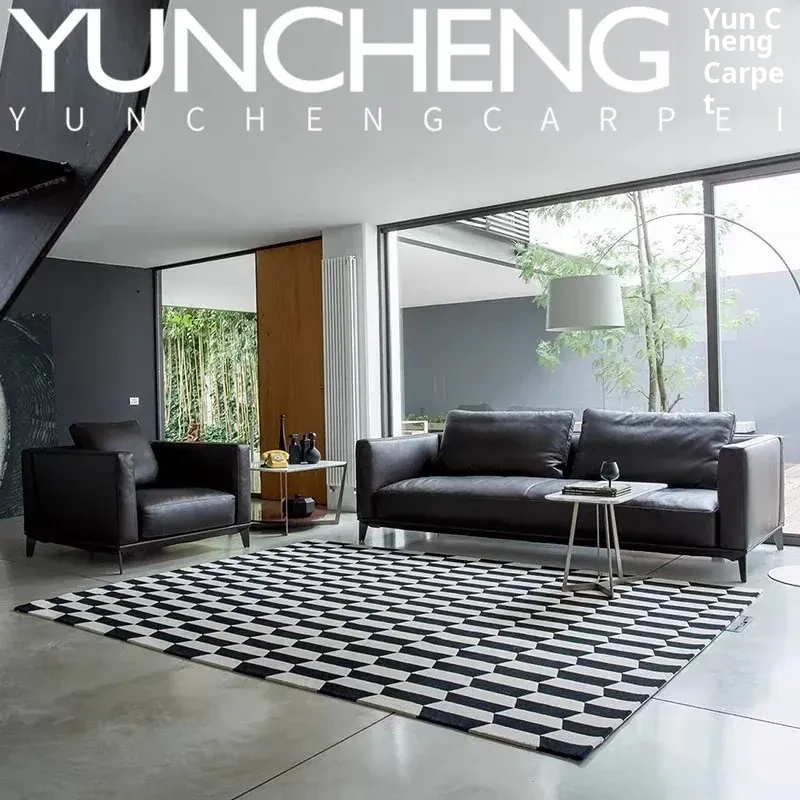 Yuncheng Best-Selling European Style Coffee Table Carpet - Modern Handmade Checkered Pattern Rug for Living Room and Bedroom, Perfect for Bedside Use!