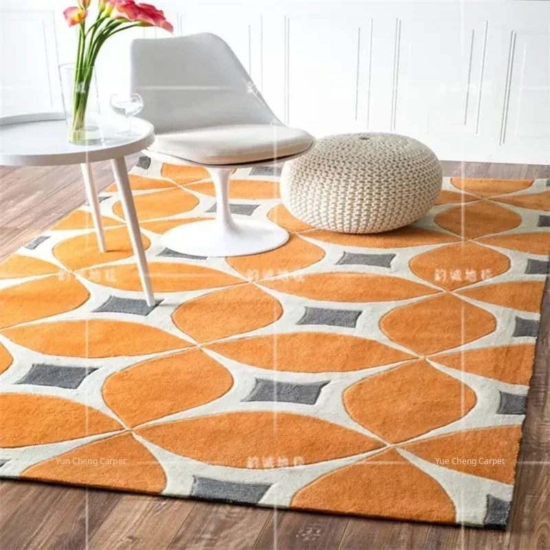 Modern New Zealand Wool Living Room Area Rug - European and American Style Handmade Wool Carpet for Bedside or Coffee Table, Perfect for Showroom Décor