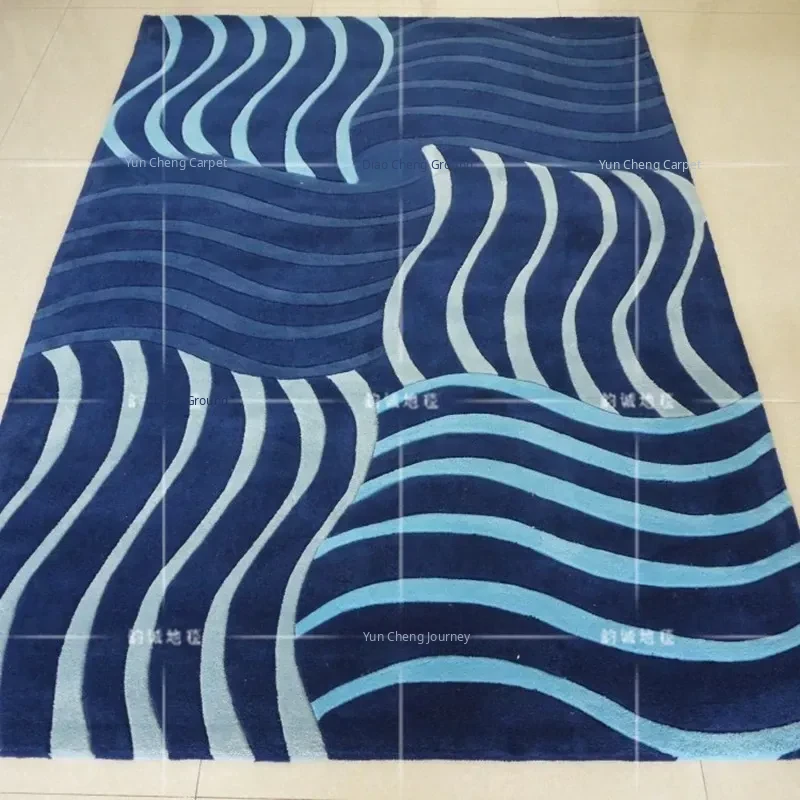 Modern Luxury Mediterranean Blue Acrylic Wave Pattern Area Rug - Perfect for Living Room, Bedroom, and Walk-in Closet! Enhance Your Space with Nordic Elegance.