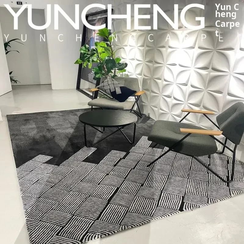 Yuncheng Best-Selling European Style Coffee Table Carpet - Modern Handmade Checkered Pattern Rug for Living Room and Bedroom, Perfect for Bedside Use!