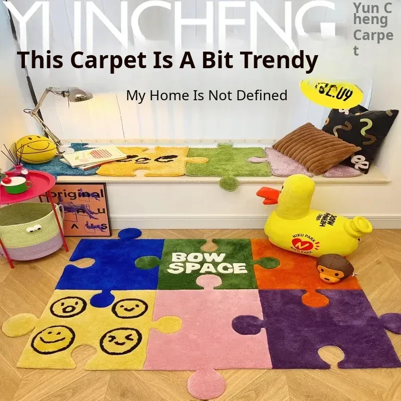 Stylish Minimalist Colorful European Smiley Face Coffee Table Puzzle Rug - Perfect for Living Room, Italian Bedroom, Study, Cloakroom, and Bedside Use!