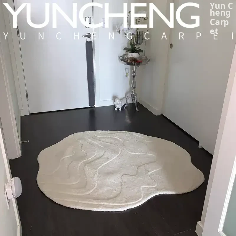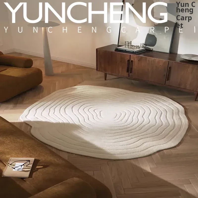 Chic Solid Color Creamy Textured Luxury Coffee Table Rug - Irregular Design for Living Room, Bedroom, Study, Cloakroom, and Bedside Use. Perfect for Elevating Your Home Decor!
