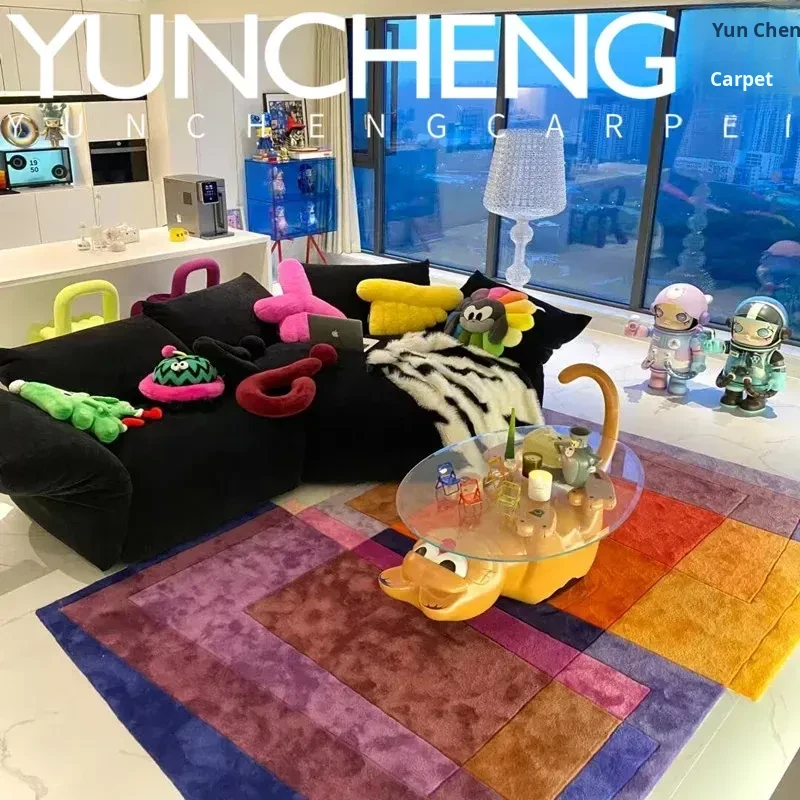 Trendy Luxury European-Style Irregular Puzzle Coffee Table with Large Area Rug – Ideal for Living Room, Italian Bedroom, Study, Walk-in Closet, and Bedside Decoration