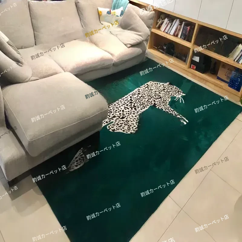動物柄ヒョウデザインのラグ - リビングやベッドサイドにぴったり!おしゃれで温かみのある部屋作りをサポートする、スタイリッシュなカーペット。あなたのインテリアを一段と引き立てる、フルカバータイプ!