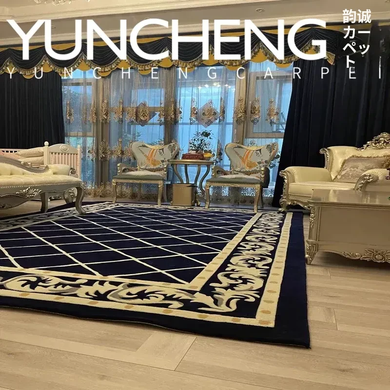 ブルー欧風・アメリカン・フレンチ・中華スタイルのリビング用コーヒーテーブル、ベッドサイドマット、フルカバーラグ、書斎やクローゼットにもぴったりなハンドメイドカーペット!お部屋を華やかに彩る一品です。