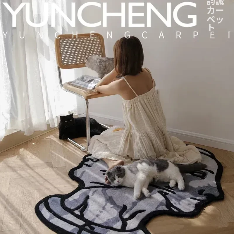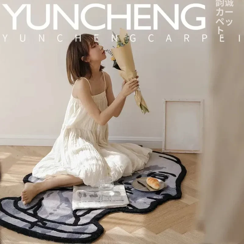 洗練されたアブストラクトデザインのグレーラグ - 欧米スタイルのリビングルームやイタリアンスタイルのベッドルームにぴったり!書斎やクローゼット、ベッドサイドに最適な軽やかなラグで、空間をおしゃれに演出します。