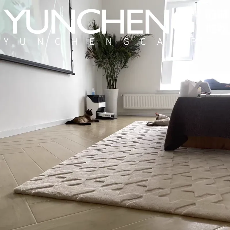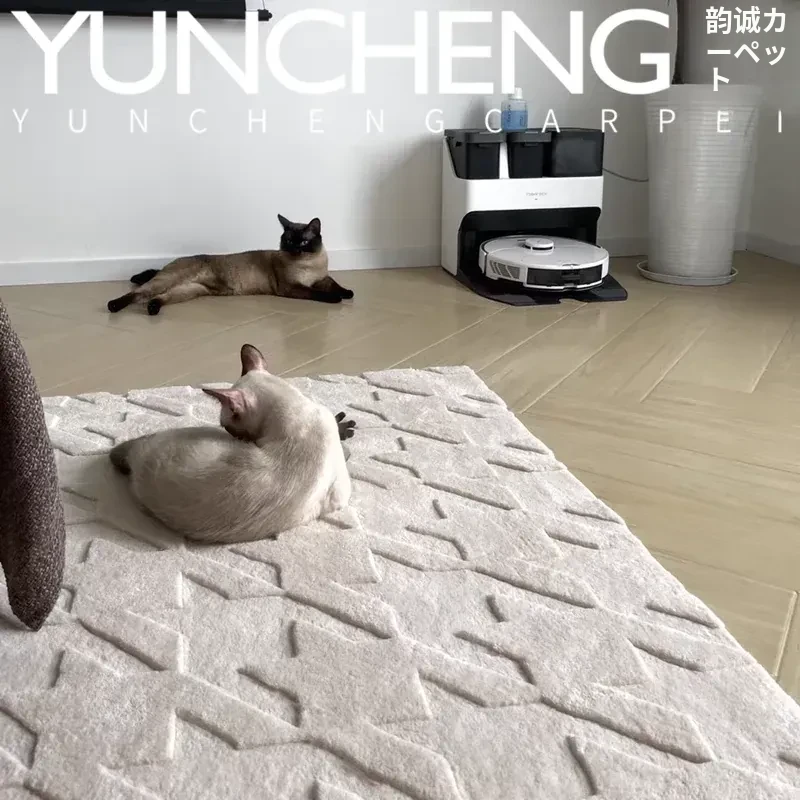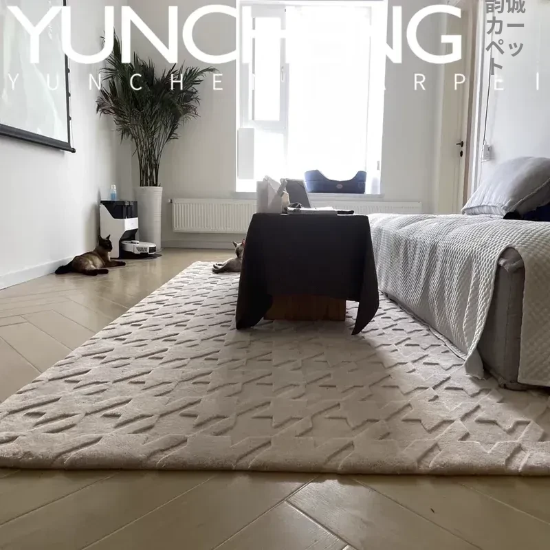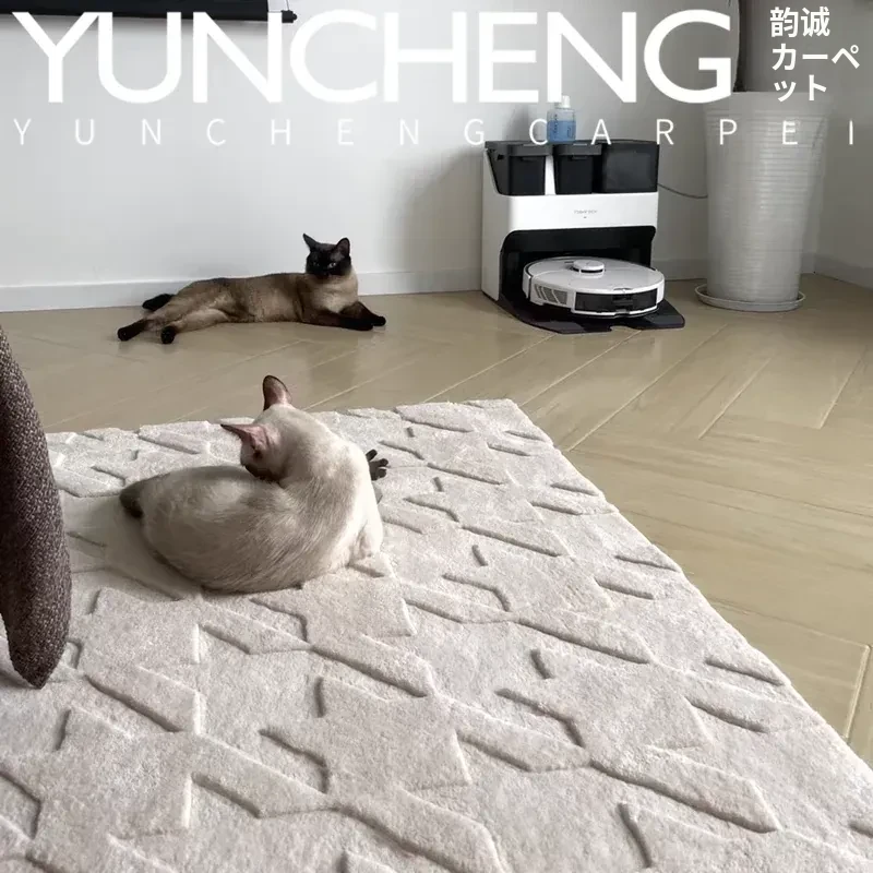 エレガントな欧風ライトラグ ベージュチェックデザイン リビングや寝室、書斎にぴったりの大判カーペット クッション性抜群で、快適な空間を演出します!