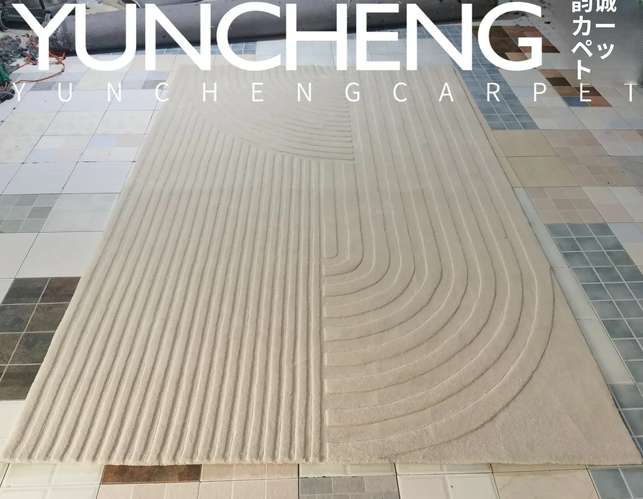 シンプルでラグジュアリーなストライプデザインの高級ベージュラグ - リビングルームや寝室、書斎、クローゼット、ベッドサイドにぴったりなスタイリッシュなアイテム!
