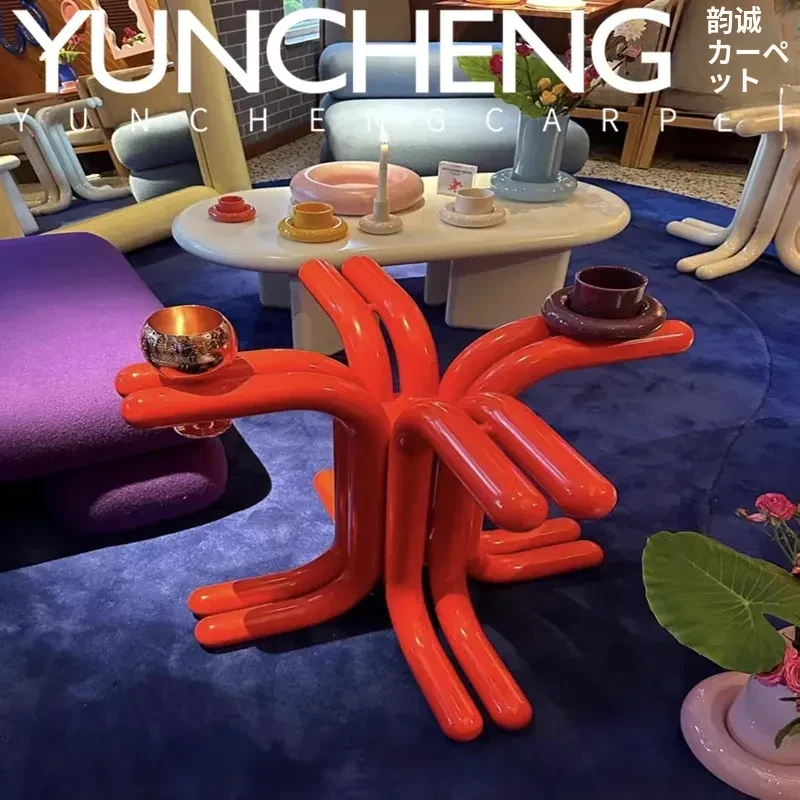 欧米風のラグジュアリーな純青色不規則立体デザインのリビングルーム用コーヒーテーブルマット。寝室や書斎、クローゼット、ベッドサイドにも最適!おしゃれで上質な空間を演出します。